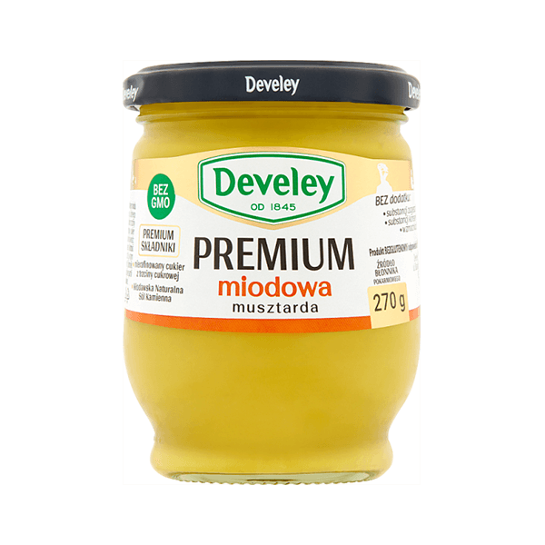 woda, gorczyca, ocet spirytusowy, miód (6%), cukier trzcinowy (11%), sól*, przyprawy, kwas: kwas cytrynowy