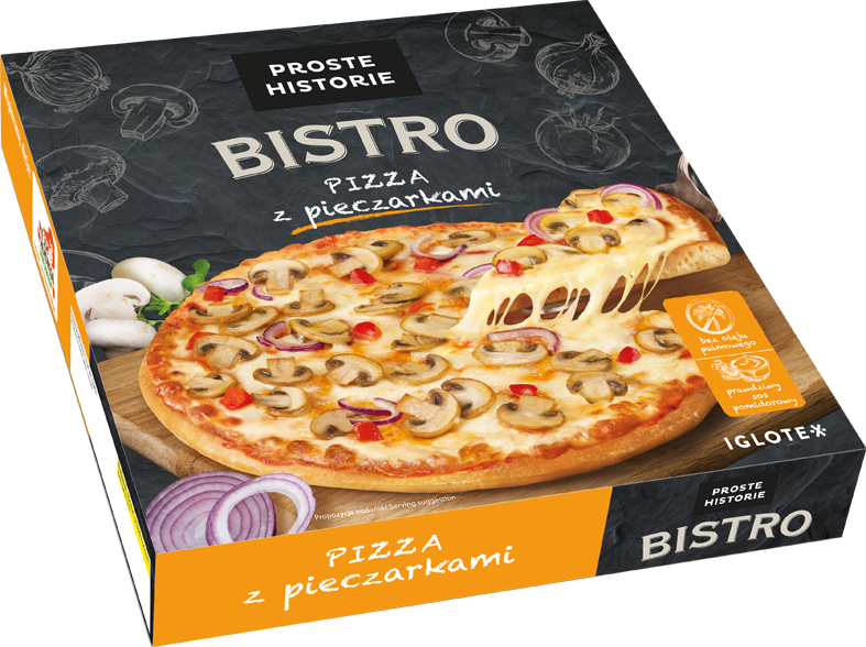 Składniki: mąka pszenna, 13% przetarte pomidory, 10% pieczarki, 9,9% ser mozzarella, woda, 4,6% cebula, olej rzepakowy, pomidory, drożdże, cukier, gluten pszenny, sól, mleko odtłuszczone w proszku, przyprawy, oregano, skrobia pszenna, ekstrakt oregano, skrobia modyfikowana, mąka słodowa pszenna, błonnik grochowy, kurkuma, sok z aceroli w proszku.