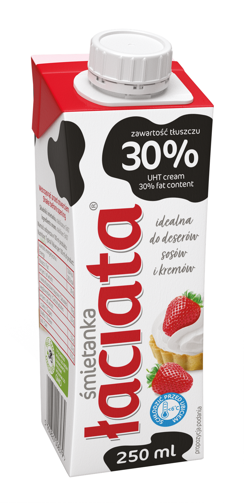 idealna do deserów, sosów i kremów,schłodzić przed ubiciem <6°C,bez GMO - z polskiego mleka od krów karmionych paszami wolnymi od GMO