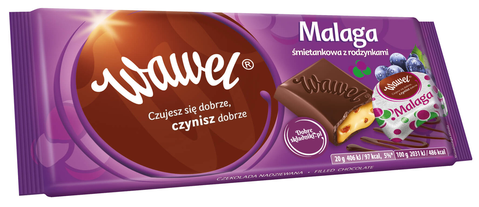 Czekolada z nadzieniem (40%) śmietankowo-rodzynkowym.